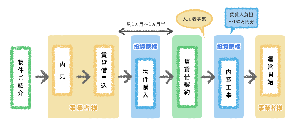 ※内装工事費用は物件により貸主様負担(最大150万円まで)の場合と借主様負担の場合があります。